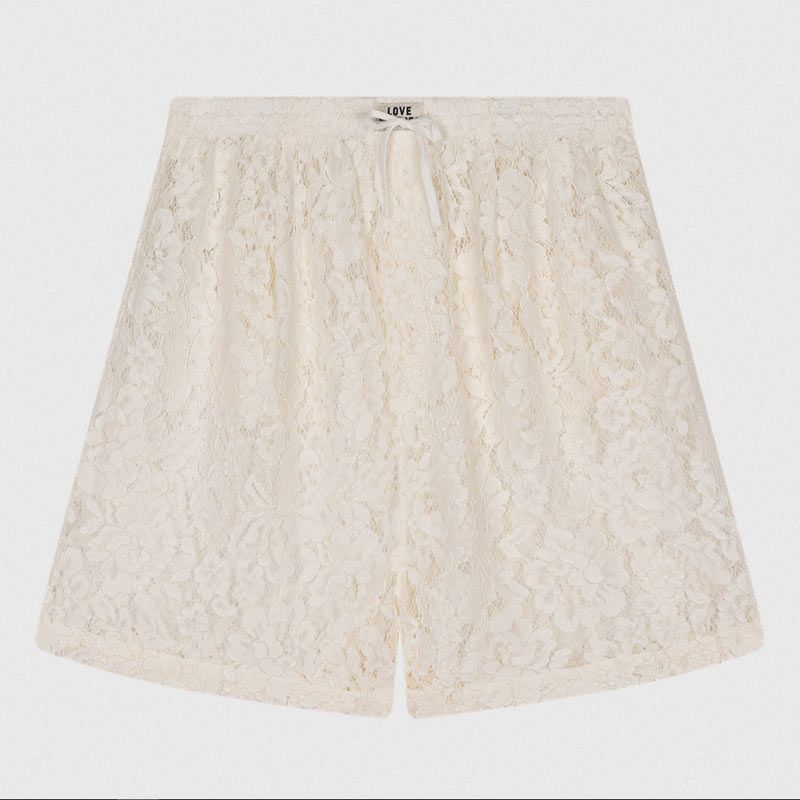 Pantaloncini bermuda Alfie in pizzo color burro.