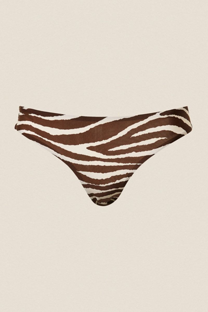 Slip brasiliana in charmeuse stampata a fantasia animalier con fodera interna in tulle a tinta unita, fiocco in organza e logo a cuore in metallo al centro sul retro.