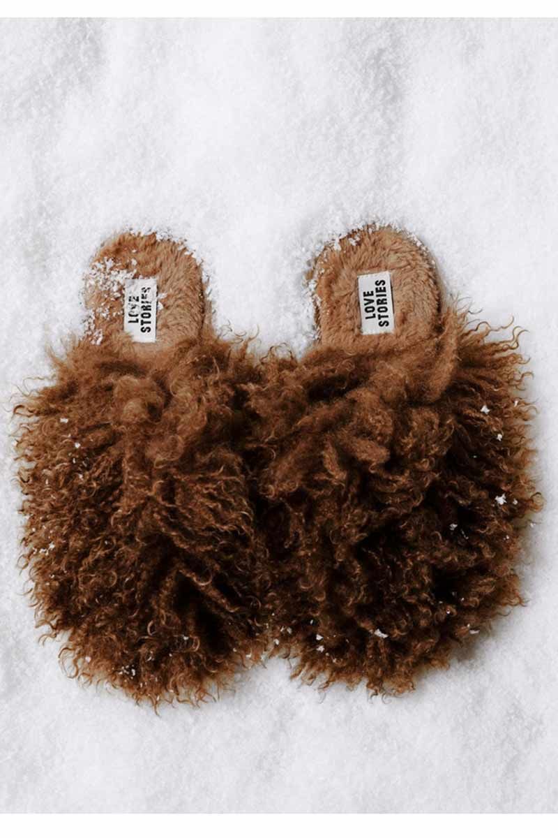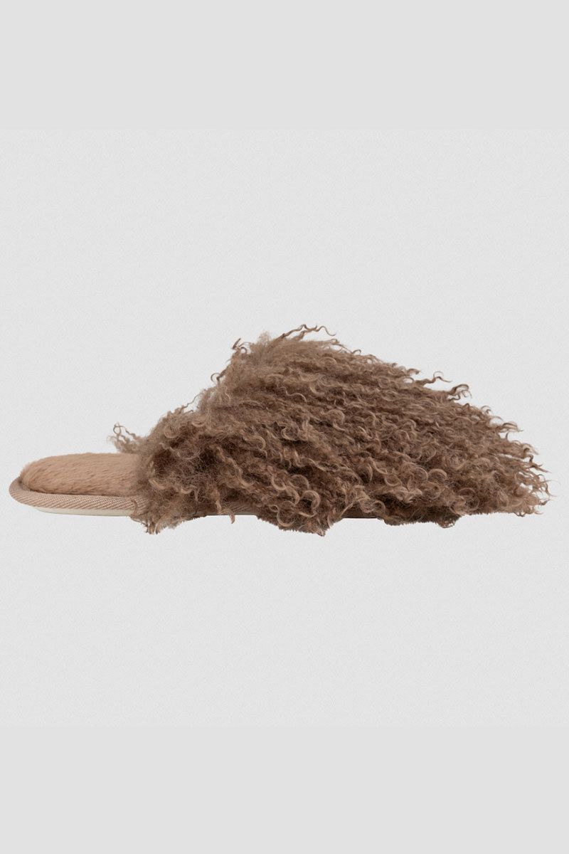 Morbide pantofole in ecopelliccia marrone Adatte sia per interni che per esterni grazie alla suola in gomma Per una cura ottimale, si consiglia di non lavare questo articolo