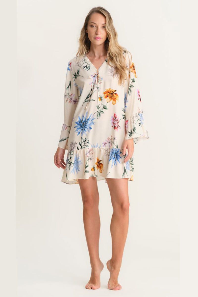 Realizzato in 100% viscosa, offre una vestibilità fresca e traspirante, perfetta per la stagione calda e piacevole sulla pelle anche nelle giornate più afose. Il design morbido e fluido del kaftano valorizza la silhouette con naturalezza, mentre la fantasia floreale dona un tocco femminile e raffinato.