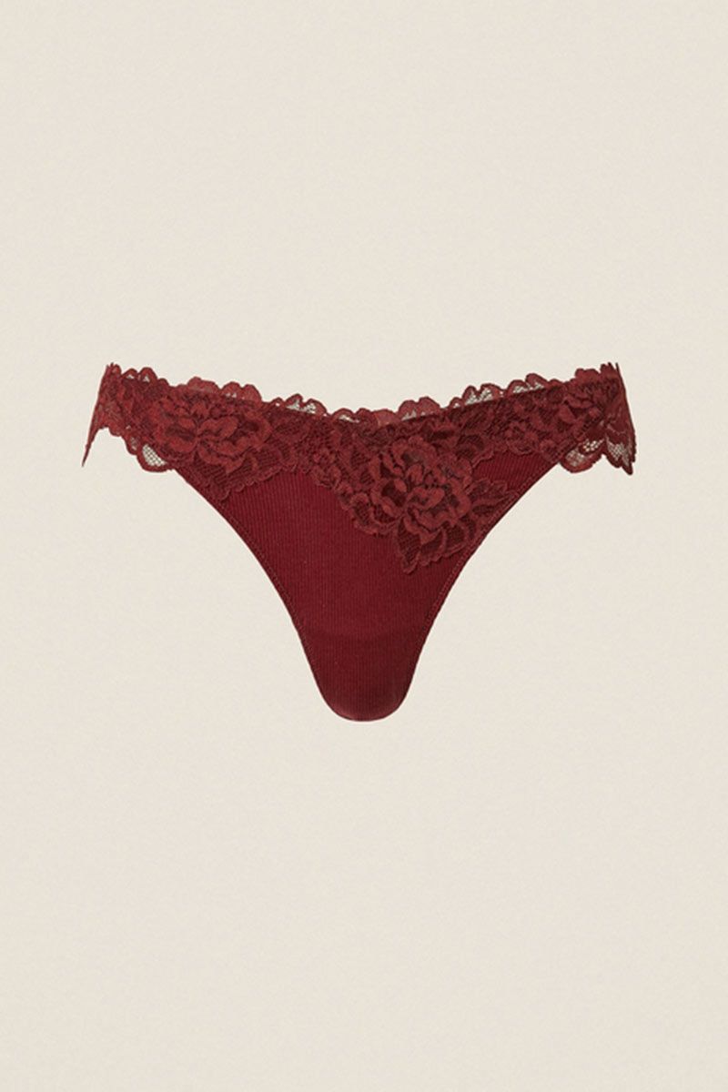 Slip perizoma in tessuto a costine con pizzo smerlato in vita, logo a cuore in metallo sul retro.