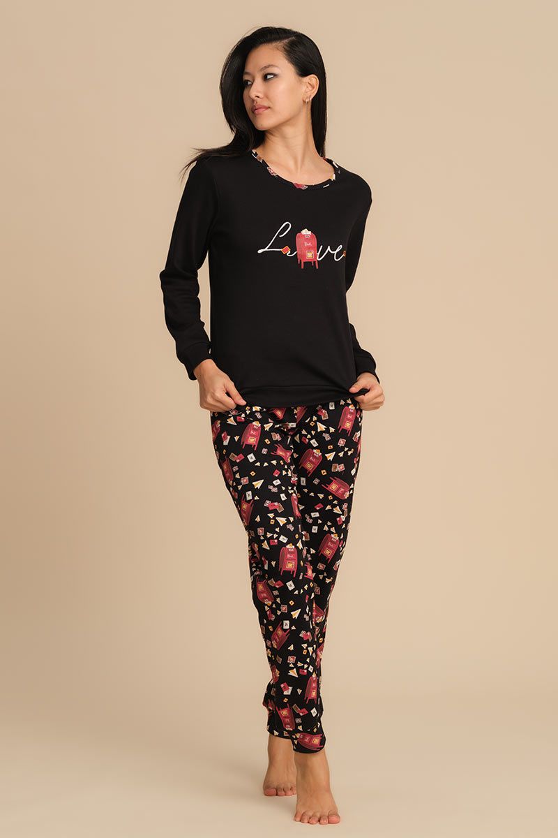 Pigiama in caldo cotone interlock, morbido, caldo e avvolgente, ideale per coccolarsi nelle sere d'inverno. La maglia a maniche lunghe tinta unita presenta una delicata stampa con ricamo "love" e una romantica cassetta delle lettere, mentre il pantalone lungo con polsino è interamente decorato da una fantasia esclusiva di lettere e cassette postali. La stampa è stata realizzata in esclusiva da Pepita e dona al completo un tocco unico e raffinato, perfetto per chi ama i dettagli curati. Grazie al tessuto in caldo cotone interlock, questo pigiama garantisce una sensazione piacevole sulla pelle e mantiene il calore senza rinunciare alla traspirabilità. È la soluzione ideale per chi desidera un look curato ma allo stesso tempo comodo per le giornate invernali trascorse in casa.