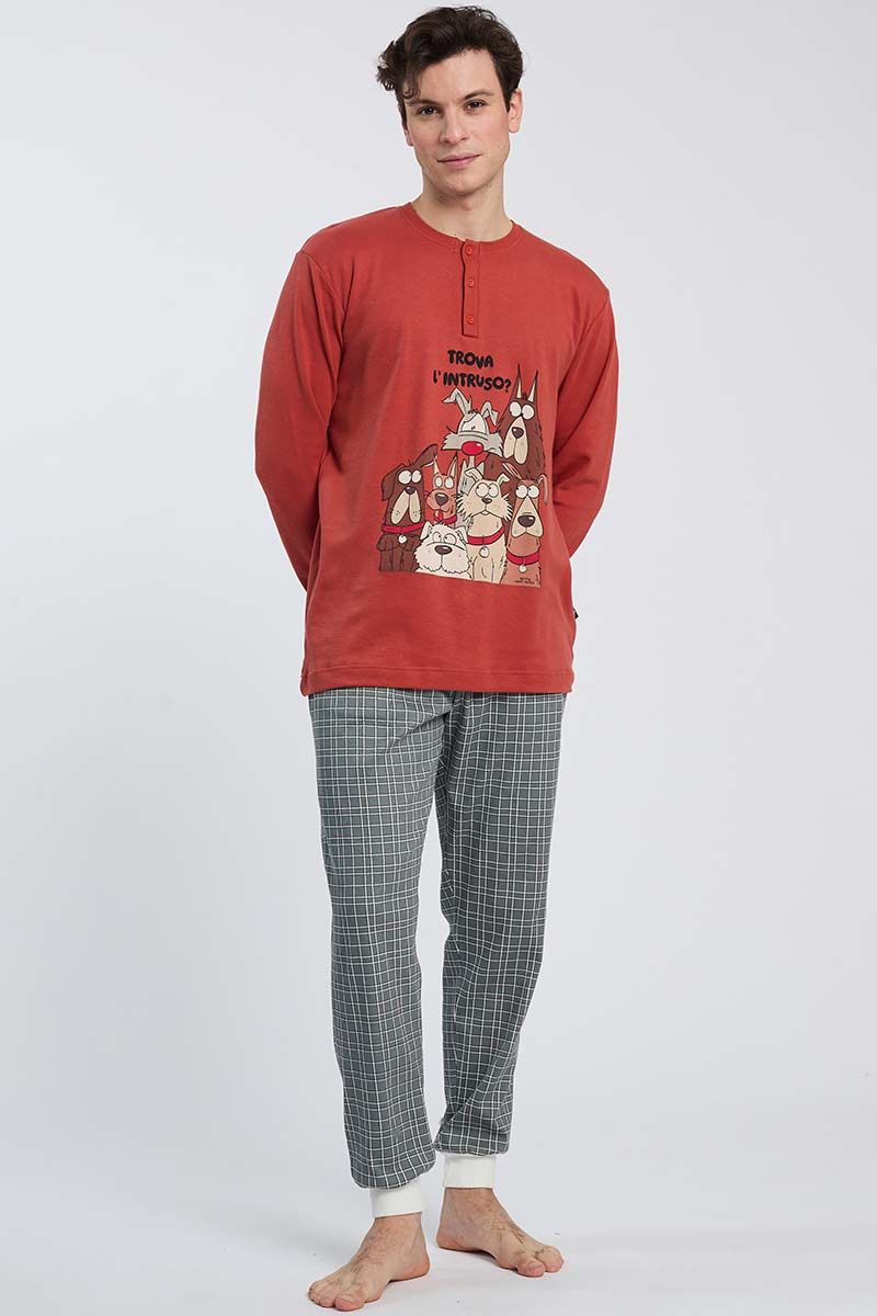 Pigiama a serafino uomo Intruso, realizzato in morbido cotone 100% per offrirti un comfort senza pari. La vestibilità rilassata ti permetterà di muoverti liberamente mentre riposi.