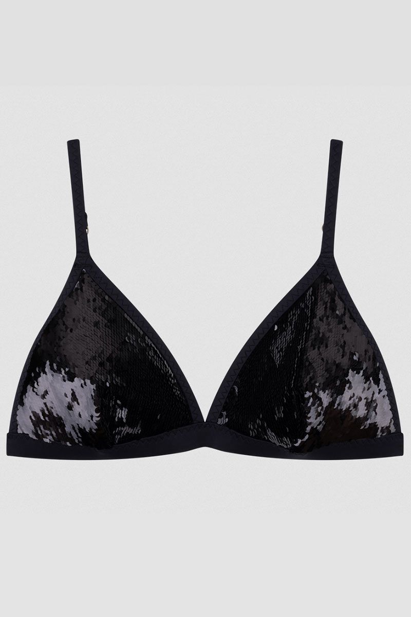Triangolo Uma in nero di cotone con paillettes, super morbido sulla pelle